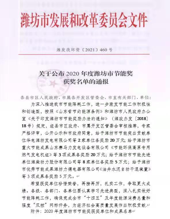 近日,在濰坊市發(fā)展改革委員會組織的節(jié)能先進(jìn)單位評選中,振興焦化公司榮獲2020年度“濰坊市節(jié)能先進(jìn)單位”稱號,并獲獎金5萬元。