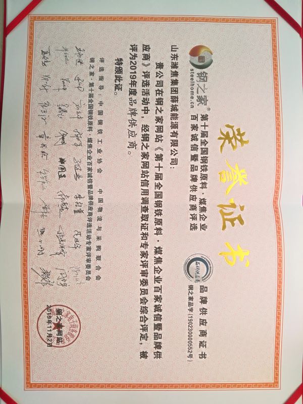 品牌供應(yīng)商榮譽(yù)證書